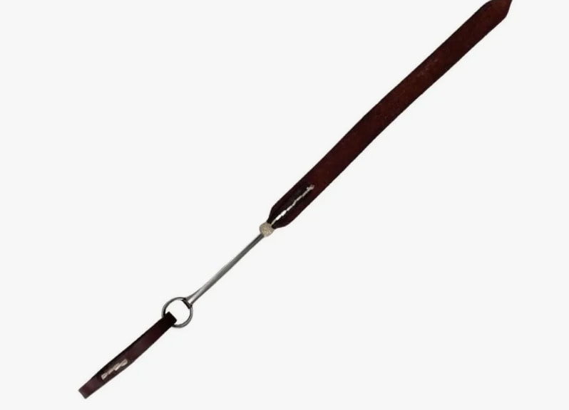 – Possui alça em couro para ser mantido na mão do cavaleiro;
