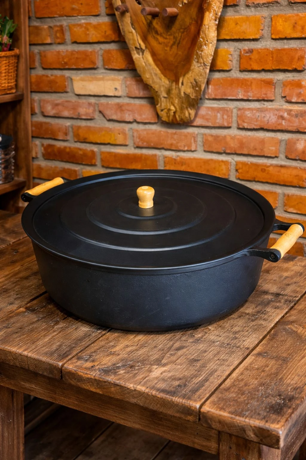 Panela grande de 25 litros com tampa, robusta e ideal para preparar grandes quantidades com praticidade e eficiência. Perfeita para receitas campeiras, como carreteiro, feijão, sopas e ensopados, distribuindo o calor de forma uniforme. Com design resistente e alças firmes, é a escolha certa para quem valoriza tradição e rendimento na cozinha ou no preparo em grupo.