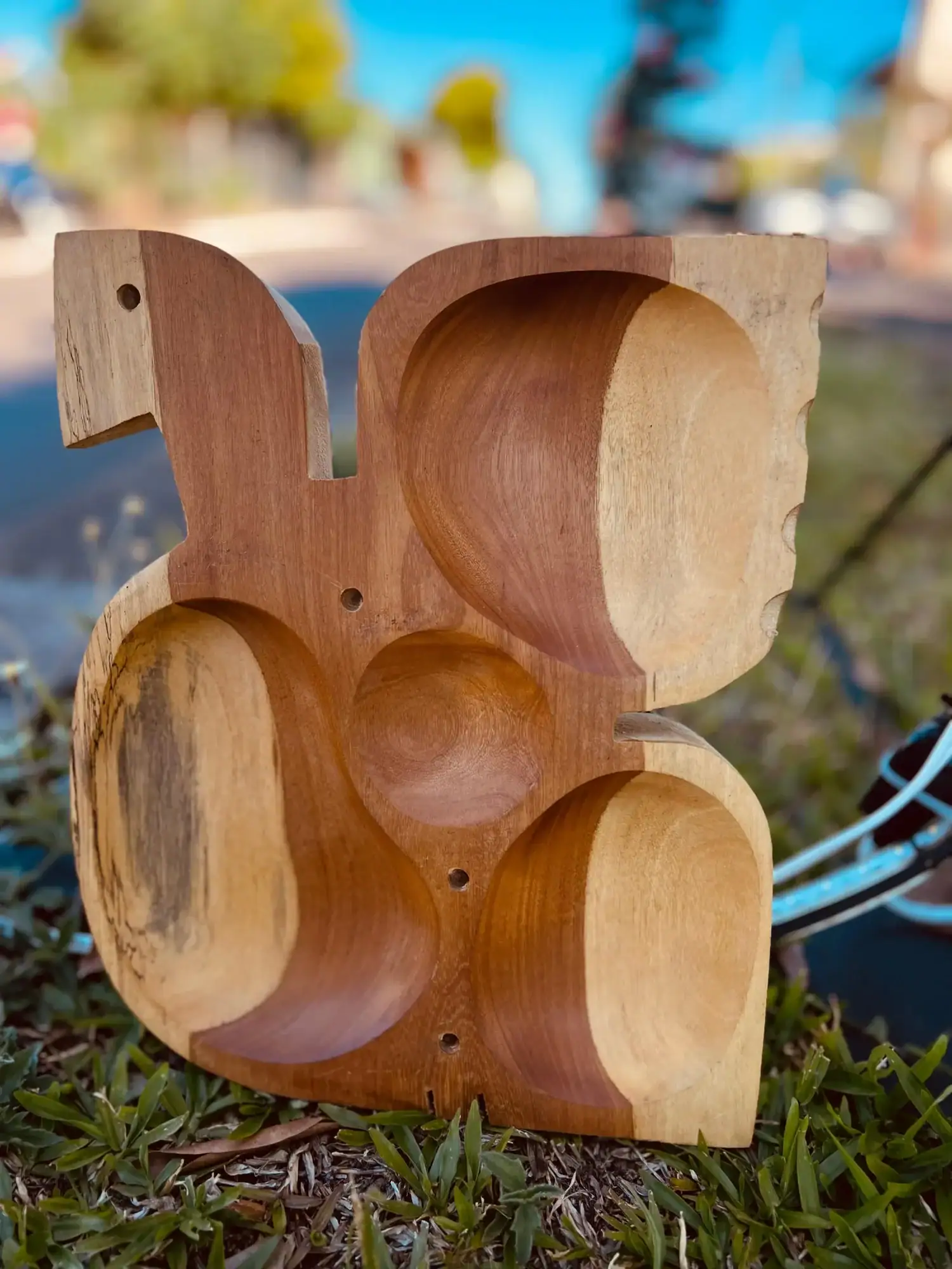 A Petisqueira em Madeira no formato de esquilo une criatividade, funcionalidade e charme. Com compartimentos esculpidos diretamente na madeira, é ideal para servir petiscos variados de maneira divertida e diferenciada.