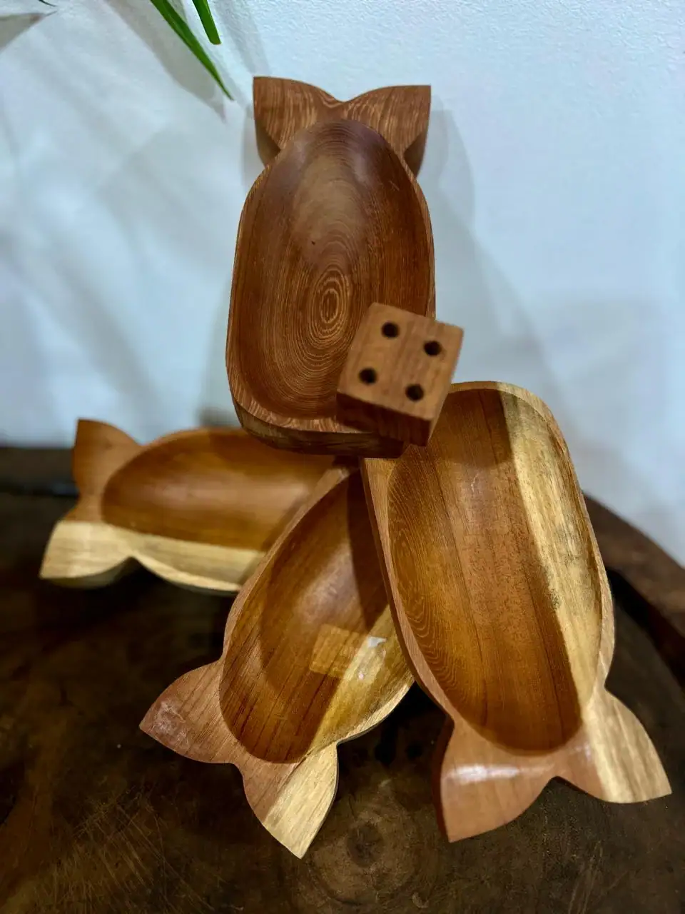 Charmoso e funcional, este conjunto de petisqueiras em madeira é perfeito para servir petiscos com estilo e personalidade. Com design exclusivo em formato de peixe, cada peça destaca os veios naturais da madeira, tornando cada conjunto único.