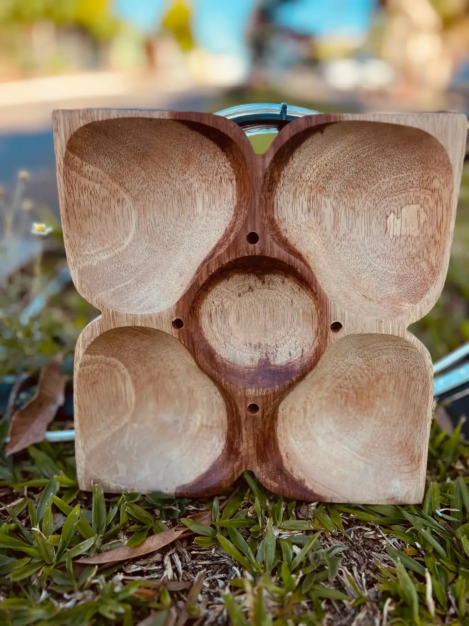 🍻 Petisqueira em Madeira com 4 Compartimentos (Formato Trevo)