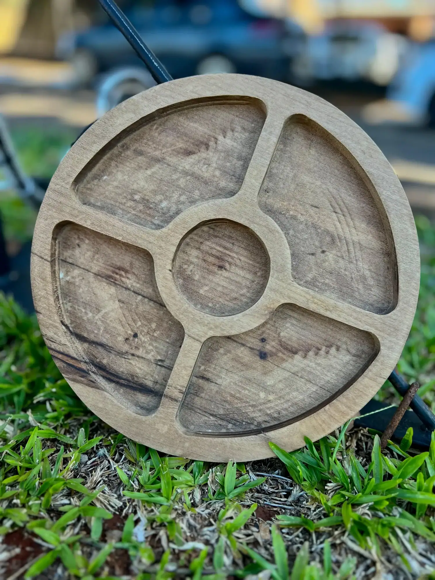 🥩 Petisqueira Redonda em Madeira com Divisórias